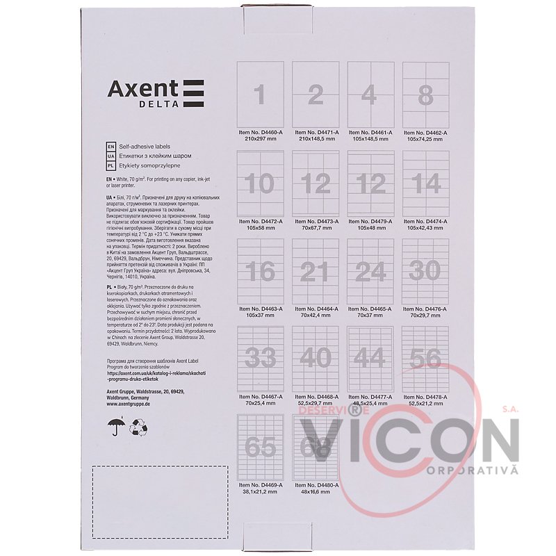 Универсальные этикетки с клейким слоем Axent незаменимы для адресации писем и посылок, штрих-кодирования товаров, классификации документов, создания информативных наклеек, маркировки в офисе и в домашних условиях (например, коробок с вещами) и т.д.