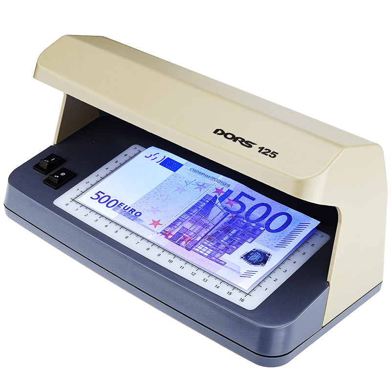 Ультрафиолетовый просмотровый детектор DORS 125 предназначен для визуального контроля подлинности банкнот различных валют, ценных бумаг, документов строгого учета на защищенных бланках, документов удостоверяющих личность и другой защищенной полиграфической продукции несколькими методами. Благодаря мощному УФ-источнику (12 Вт) и широкой рабочей зоне DORS 125 позволяет комфортно и эффективно работать при ярком дневном свете или в хорошо освещенном помещении, осуществлять УФ-контроль банкнот «веером» и в корешке.