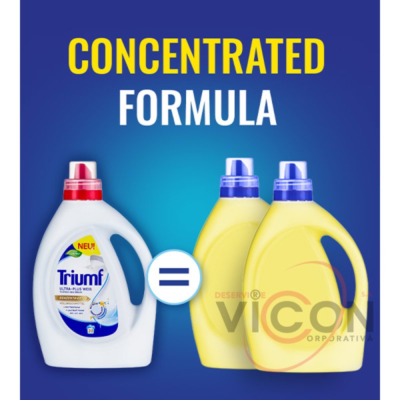 Triumf — немецкий бренд концентрированных средств для стирки. Продукция разработана на основе современных формул и высоких технологических стандартов. Изготавливается исключительно на сертифицированных заводах, с последующим подтверждением качества в независимых лабораториях. Инновационные технологии производства гарантируют не только высокую эффективность продукта, удобную упаковку, безопасность использования, но и заботу об окружающей среде.