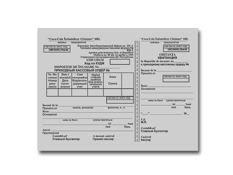 Приходный кассовый ордер, газетка серая