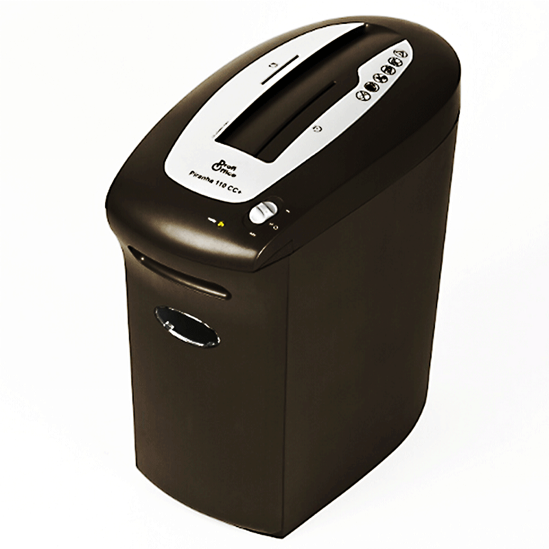 Персональный уничтожитель Piranha 110 CC + максимально функционален. Он может уничтожать бумагу, CD и пластиковые карты.
