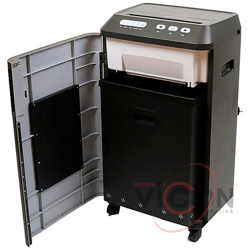 Alligator 818 CC+ предназначен для использования 1–5 людьми в офисе. Уничтожитель уничтожает до 18 листов плотностью 80 г/м², скрепленных или не скрепленных скобами. Измельченная бумага разрезается на мелкие частицы размером 2 х 10 мм. Максимальное время непрерывной работы составляет 60 минут без остановок. Затем ему нужно дать остыть в течение 40 минут. Во время своей деятельности он очень тихий. Мы называем эту бесшумную работу технологией Wisper. Максимальный уровень шума составляет 60 дБ, а вместимость корзины для бумаг — 36 литров. Этот Alligator имеет цифровой блок управления. Он автоматически останавливается, когда мусорная корзина заполняется, и визуально сигнализирует о переполнении мусорного бака. Измельчитель также оснащен функцией автоматического запуска, автоматического движения вперед и назад, а также защитой от перегрева.