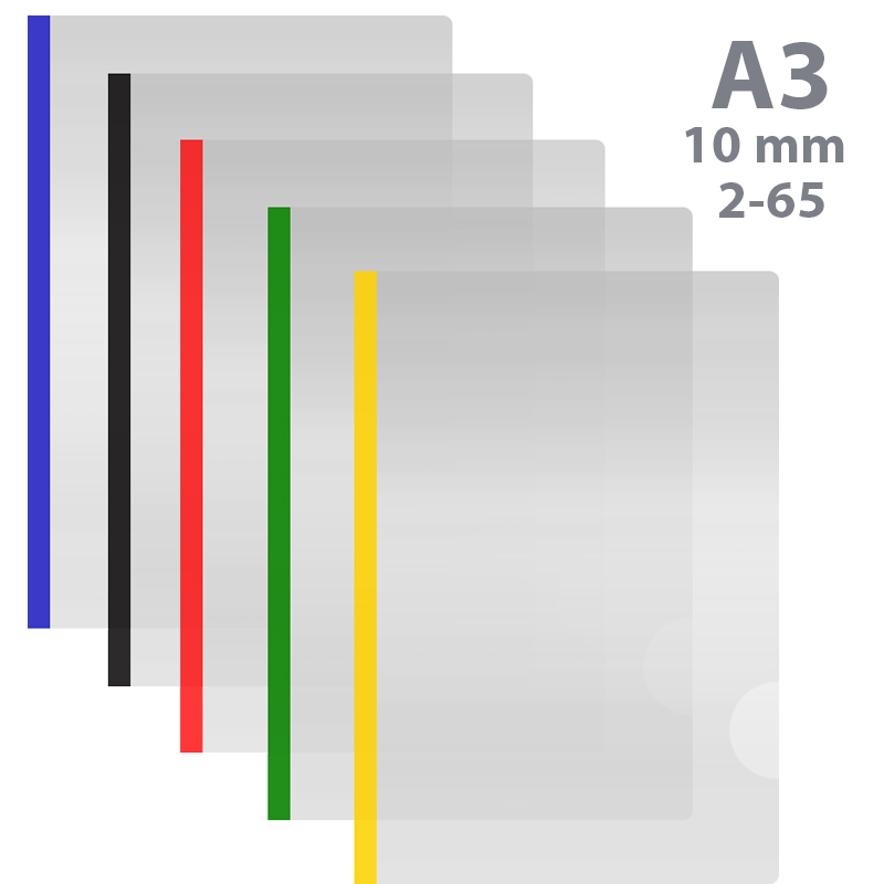 Папка-скоросшиватель пластиковая, А3, с планкой-прижимом 10мм, для 2-65 листов