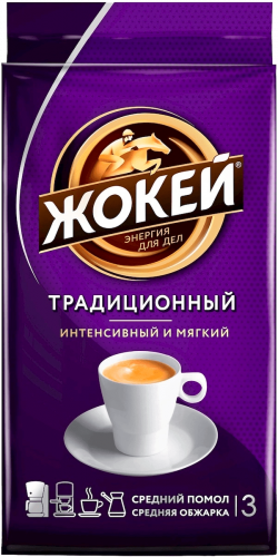 Бленд, объединяющий отборные сорта кофе из Индии и Вьетнама. Жокей Традиционный — кофе во французском стиле — плотный, густой вкус с приятной горчинкой удивительно сочетается с легкими сладко-ванильными нотами в аромате.