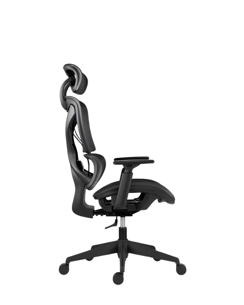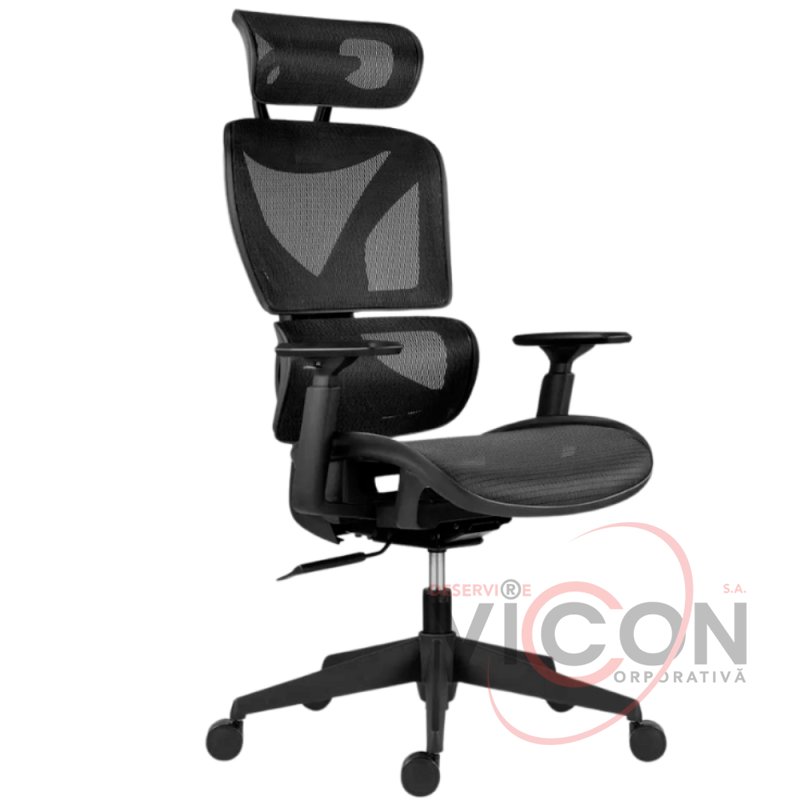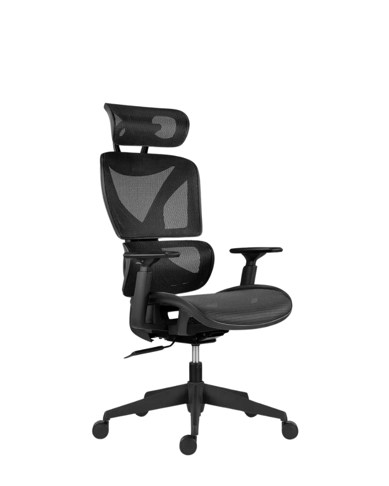 Офисное кресло ESTER с сеткой на сиденье, спинке и подголовнике, воздухопроницаемость повышает комфорт и гигиену сидения, предотвращает перегрев соприкасающихся частей тела.