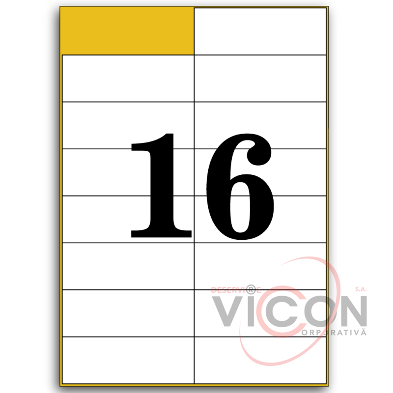 Этикетки самоклеящиеся белые, 16 на листе. Размеры: 104 x 37 mm