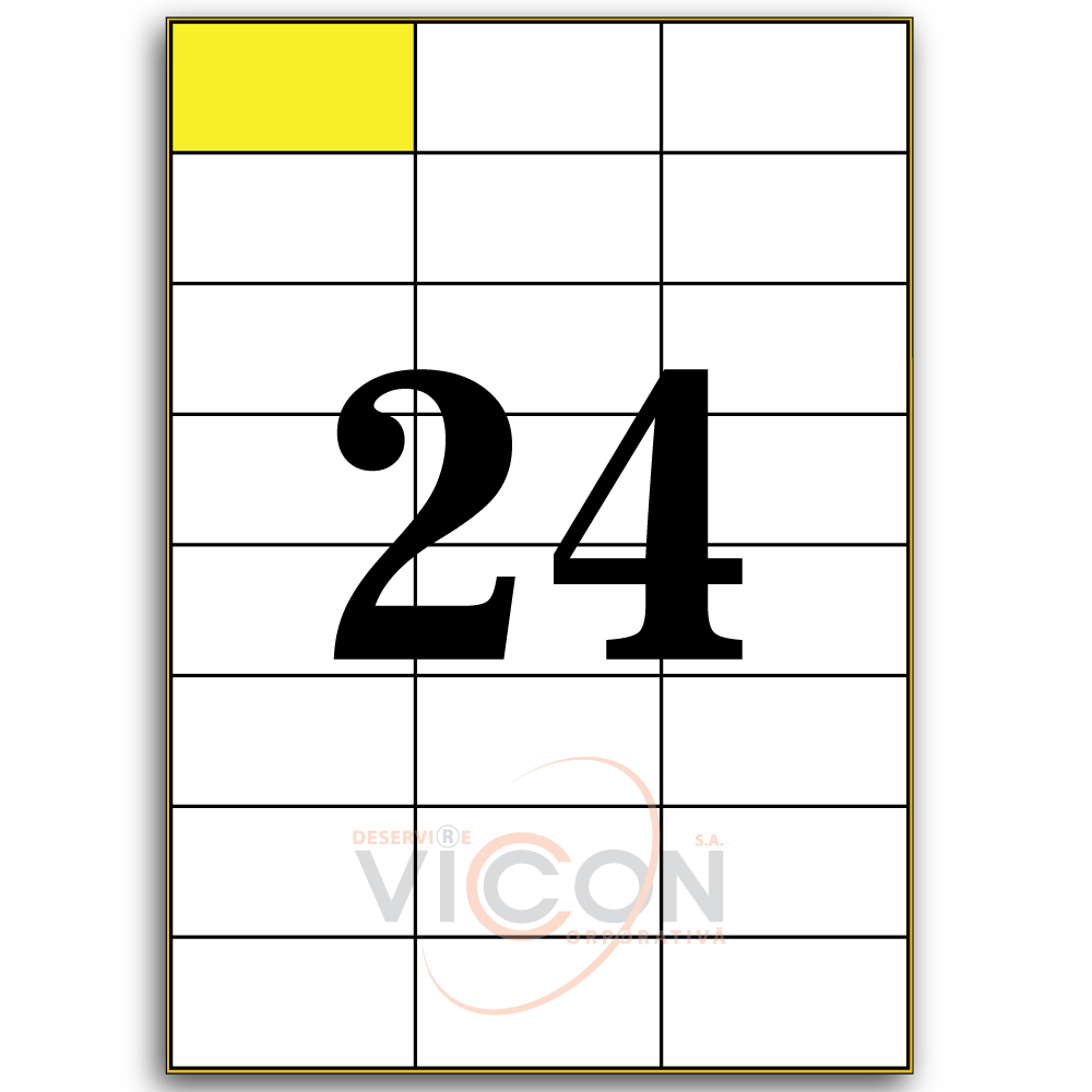Этикетки самоклеящиеся белые, 24 на листе. Размеры: 70 x 37 mm