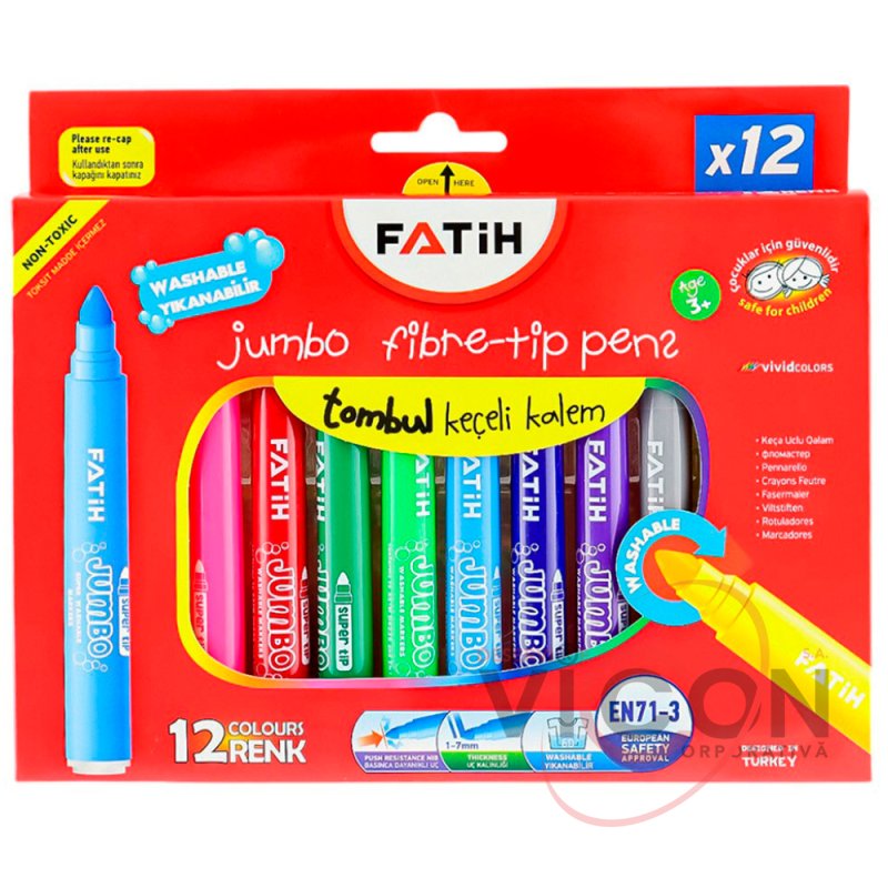 Фломастеры FATIH EN71-3 Super Washable Jumbo 12 цветов