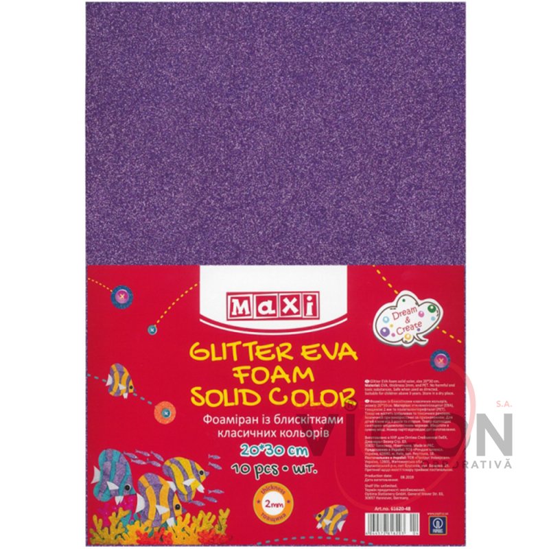 Фоамиран с блестками, 20х30 см, 2 мм, фиолетовый, 5 листов