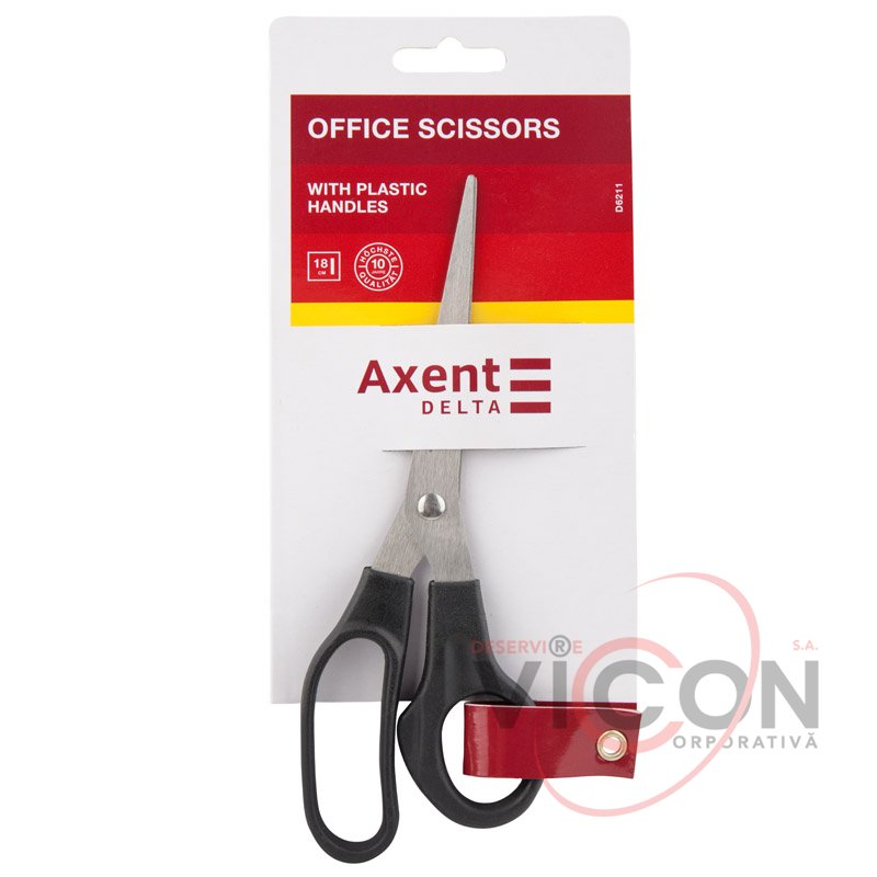 Ножницы Axent Delta D6211, 18 см, с пластиковыми ручками, черные