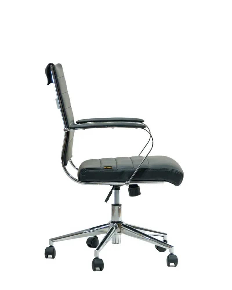 Укороченная спинка обеспечивает комфортную поддержку спины, а мягкое сиденье создаёт удобство даже при длительной работе. Подлокотники снимают нагрузку с плеч и рук.