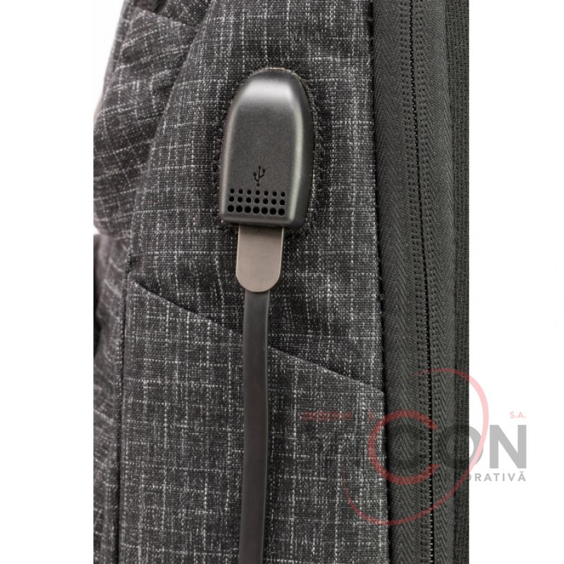 Oтделение - 1 c органайзером и съемной ключницей, передний карман на молнии со светоотражающей тканью, эргономичная лямка со специальной петелькой для фиксации наушников/кепки/очков, на карабине с возможностью менять положение лямки с лева на право, материал: полиэстер с PU покрытием на фасаде; крепкая ручка; встроенный USB порт.