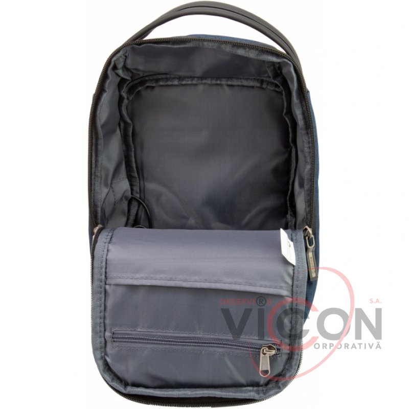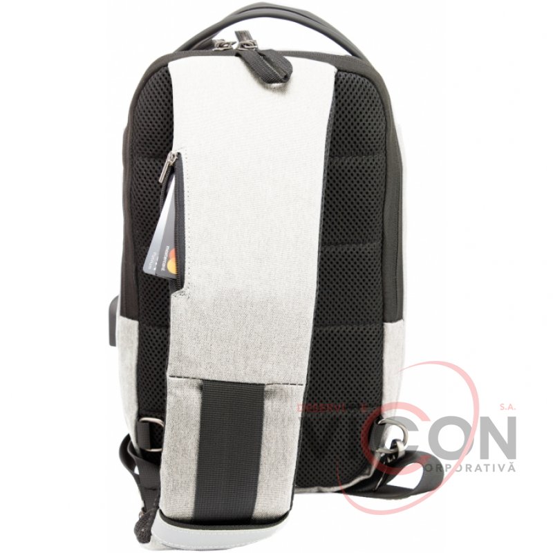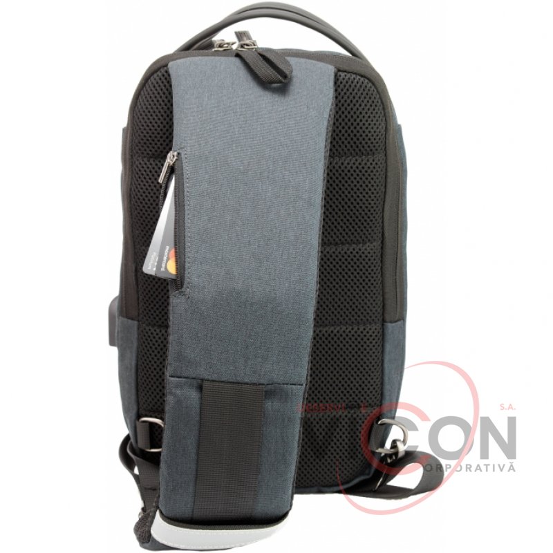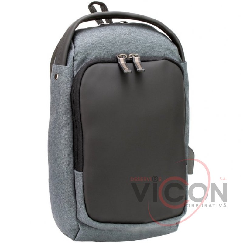 Oтделение - 1, встроенный USB порт, передний карман на молнии с органайзером, эргономичная лямка на карабине с возможностью менять положение лямки с лева на право, скрытый карман на молнии на верхней части лямки, материал: полиэстер с PU покрытием на фасаде; крепкая ручка.