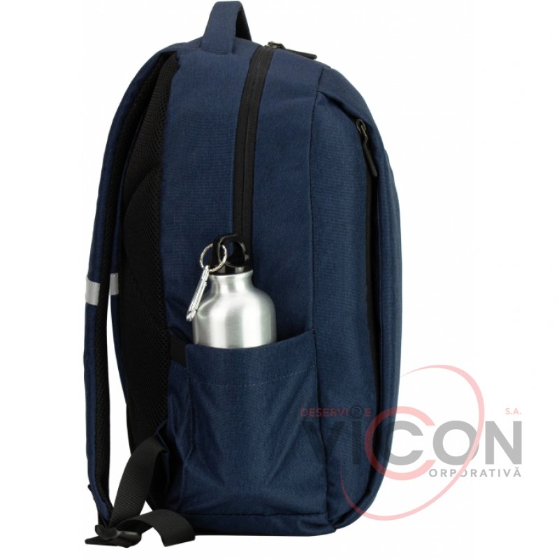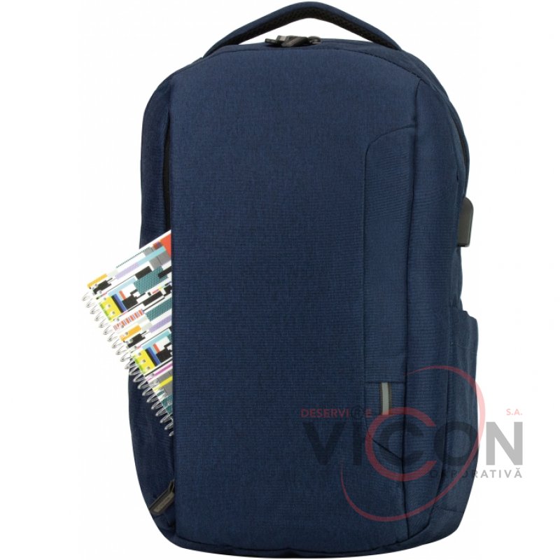 Размер: 44*29*15 см. Материал: полиэстер с РЕ вставкой на фасаде; внешний USB-порт, анатомическая спинка с мягкими вставками; Laptop-карман; 1 отделение на молнии; 1 передний карман на молнии, органайзер; металлическая фурнитура, двойные застежки; крепкая ручка; спинка уплотнена PE вставкой; эргономичные S-образные регулируемые лямки, боковые карманы с расширением, светоотражающие элементы.