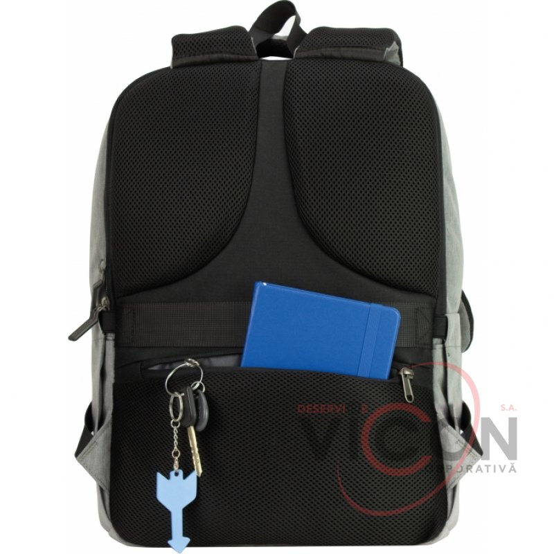 Размер: 44*31*15 см. Материал: полиэстер с РЕ вставкой на фасаде и по бокам; внешний USB-порт, анатомическая спинка с мягкими вставками, скрытым карманом и ремнем для дополнительной фиксации на чемодане для путешествий; Laptop-карман и карман для планшета; 2 отделения на молнии; 1 передний карман на молнии, органайзер; металлическая фурнитура, двойные застежки; крепкая ручка; спинка уплотнена PE вставкой; эргономичные S-образные регулируемые лямки, боковые карманы, светоотражающие элементы.