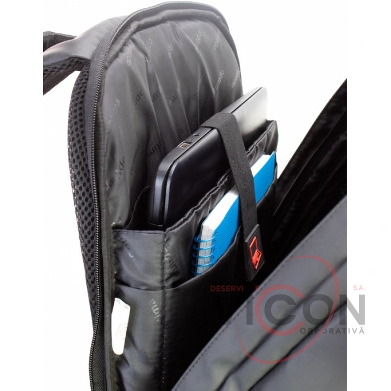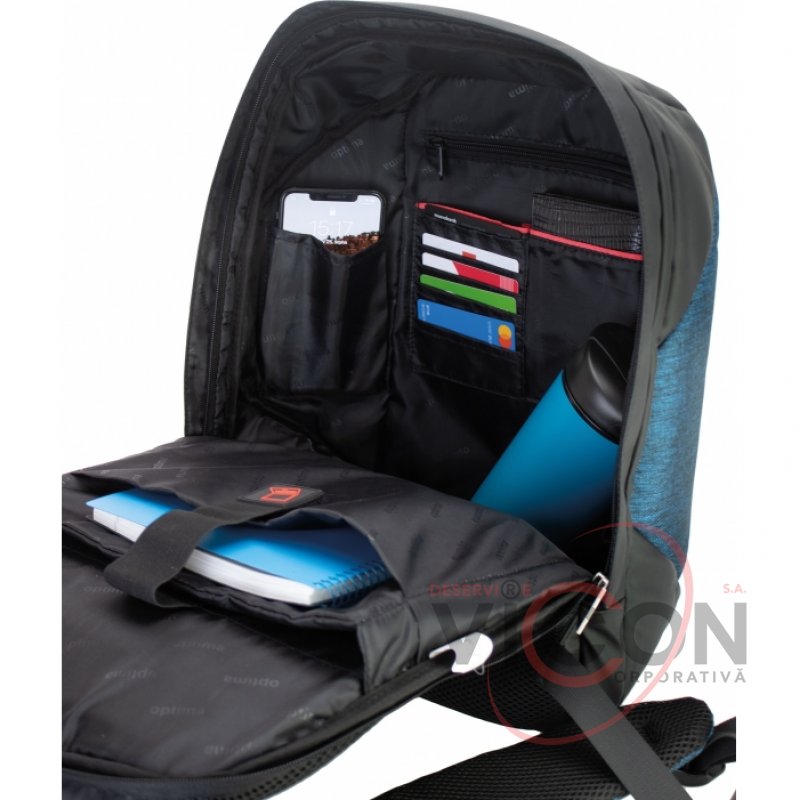 Конструкция с системой Anti Theft против воровства и раскрытия; материал: полиэстер; внешний USB-порт; анатомическая спинка с мягкими вставками; Laptop-карман; 1 отделение на молнии; отдельный карман для Power bank; потайной карман на спинке; карманы на лямках; органайзер; металлическая фурнитура, двойные застежки; крепкая ручка; спинка уплотнена PE вставкой; эргономичные S-образные регулируемые лямки; ремень на лямках; ремень для фиксации на выдвижной ручке чемодана.