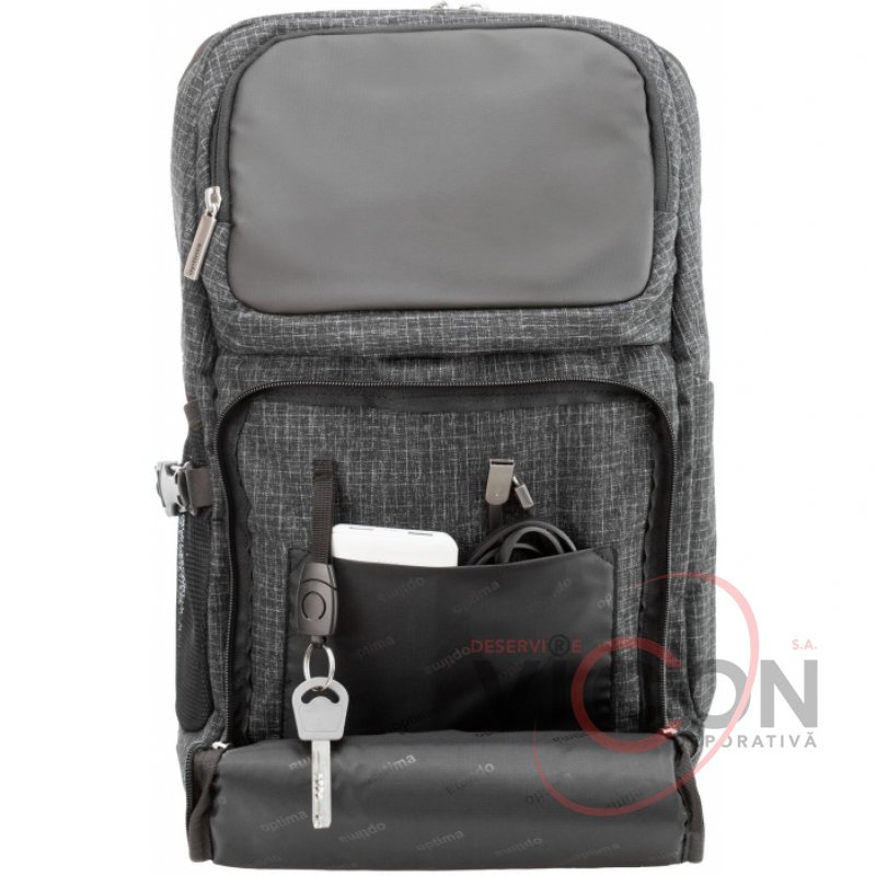 Размер: 47*28*11,5 см; Материал: полиэстер с PU покрытием на фасаде и по бокам для абсолютного водоотталкивания; анатомическая спинка с мягкими вставками, а также скрытым карманом; Laptop-карман и карман для планшета; 1 отделение на молнии; 2 кармана на фасаде, органайзер со съемной ключницей; металлическая фурнитура, двойные застежки; эргономичные S-образные регулируемые лямки.
