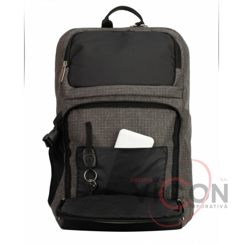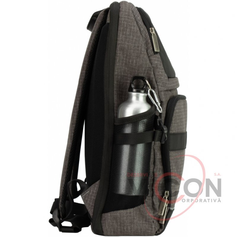 Размер: 47*28*11,5 см; Материал: полиэстер с PU покрытием на фасаде и по бокам для абсолютного водоотталкивания; анатомическая спинка с мягкими вставками, а также скрытым карманом; Laptop-карман и карман для планшета; 1 отделение на молнии; 2 кармана на фасаде, органайзер со съемной ключницей; металлическая фурнитура, двойные застежки; эргономичные S-образные регулируемые лямки.