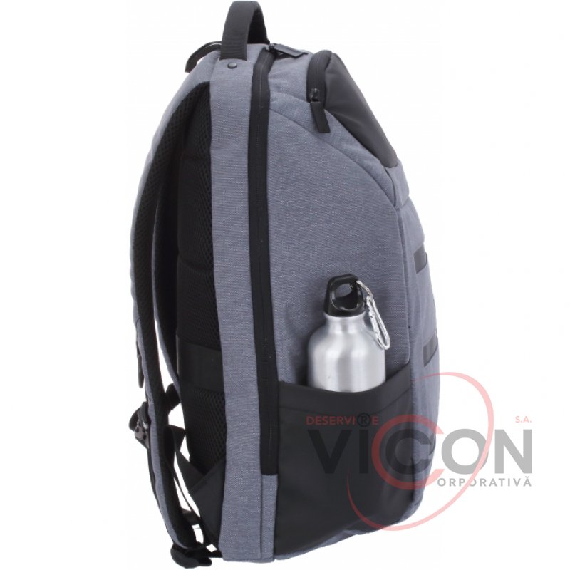 Размер: 46*30,5*20,4 см. Водоотталкивающие молнии и основной материал: полиэстер с PU покрытием и светоотражающими вставками на фасаде. Анатомическая спинка с мягкими вставками. Laptop-карман и карман для планшета; 1 отделение на молнии; съемный брелок для ключей; функциональный органайзер, вместительный карман на молнии и два боковых кармана. Нагрудный ремень для дополнительной фиксации на лямках. Металлическая фурнитура, двойные застежки. Крепкая ручка и ручка-петля. Эргономичные S-образные регулируемые лямки. Ремень для фиксации на чемодане для путешествий.
