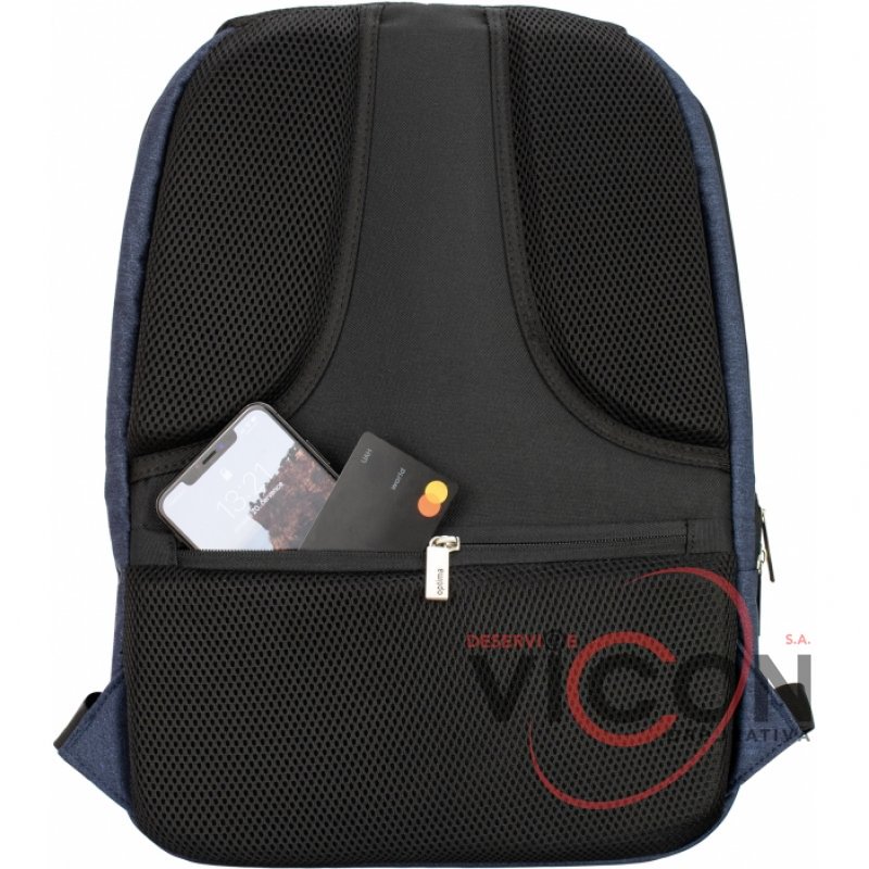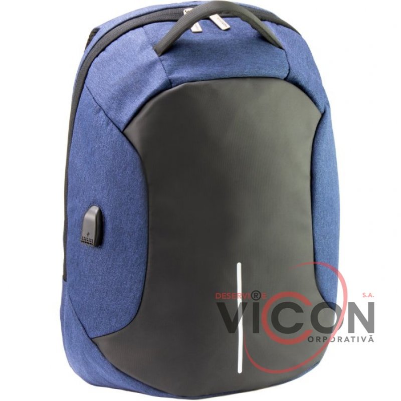 Размер: 44*34*14 см. Конструкция с системой Anti-Theft против воровства. Материал: полиэстер с PU покрытием на фасаде; внешний USB порт; съемный брелок для ключей; анатомическая спинка с мягкими вставками; Laptop-карман и карман для планшета; 1 отделение на молнии; скрытый карман на спинке, отдельный карман для Power bank; нагрудный ремень для дополнительной фиксации на лямках; органайзер; металлическая фурнитура, двойные застежки; крепкая ручка; спинка уплотнена PE вставкой; эргономичные S-образные регулируемые лямки.