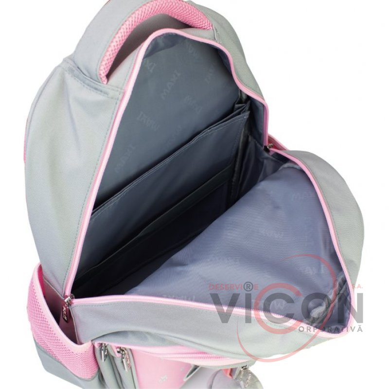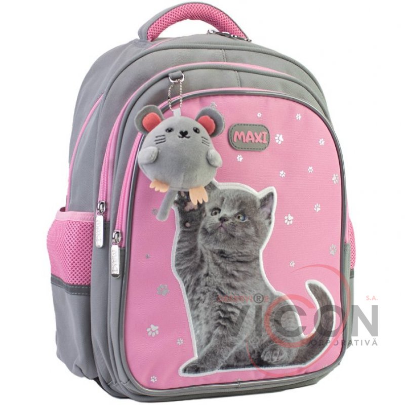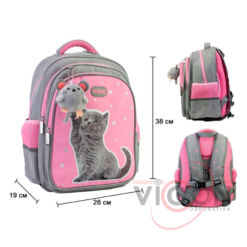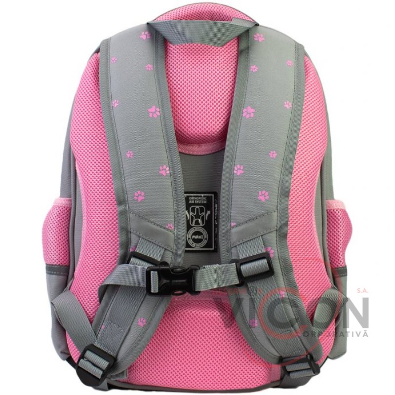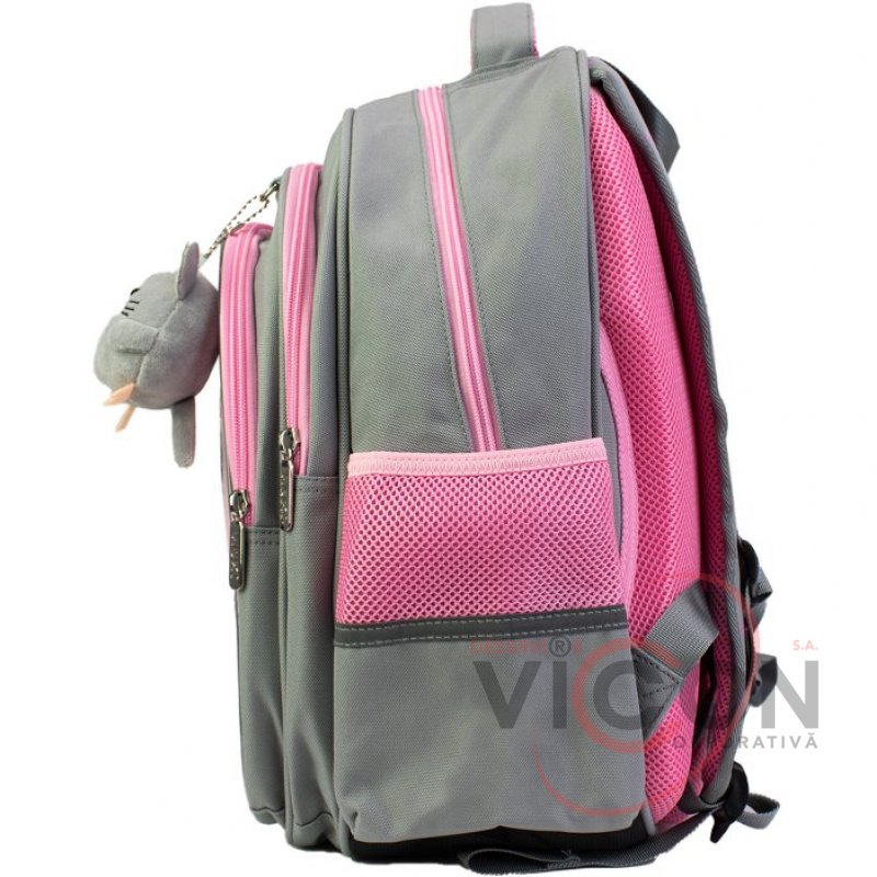 Рюкзак содержит: 3 основных отделения; 2 боковых кармана для бутылочки и зонтика; жесткая ортопедическая спинка; эргономические S-образные лямки; разделитель для книг с резинкой; ключница; нагрудный ремень для дополнительной фиксации; надежная фурнитура; светоотражающие элементы; крепкая ручка и ручка-петля; прорезиненное дно, кольцо для брелока.