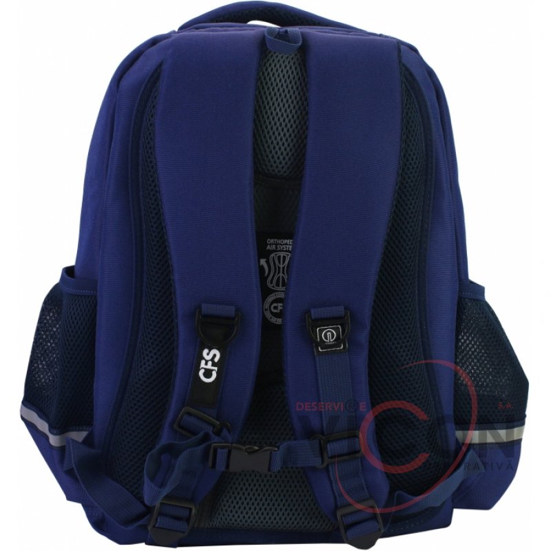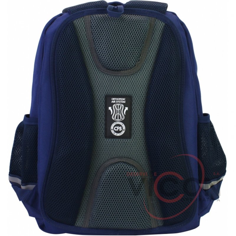 Размер: 43*31*19,5 см. Материал: полиестер 600 D. Рекомендуемая Ассоциацией ортопедов жесткая ортопедическая спинка со стеклопластиковым стержнем. 2 отделения; передний карман на молнии; удобный органайзер со съемной ключницей, боковые карманы. Эргономичные S-образные лямки, светоотражающие элементы, жесткое дно, металлическая фурнитура, крепкая ручка.