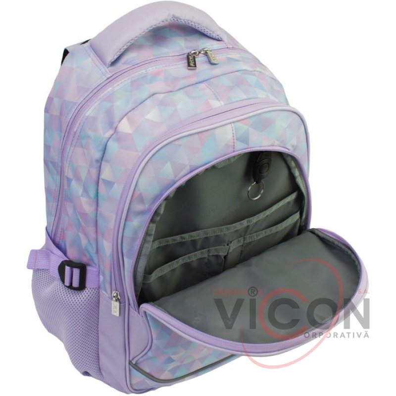 Рюкзак содержит: 4 основных отделения; 2 боковых кармана для бутылочки и зонтика; жесткая ортопедическая спинка; эргономические S-образные лямки; ключница; надежная фурнитура; светоотражающие элементы; крепкая ручка-петля; органайзер.