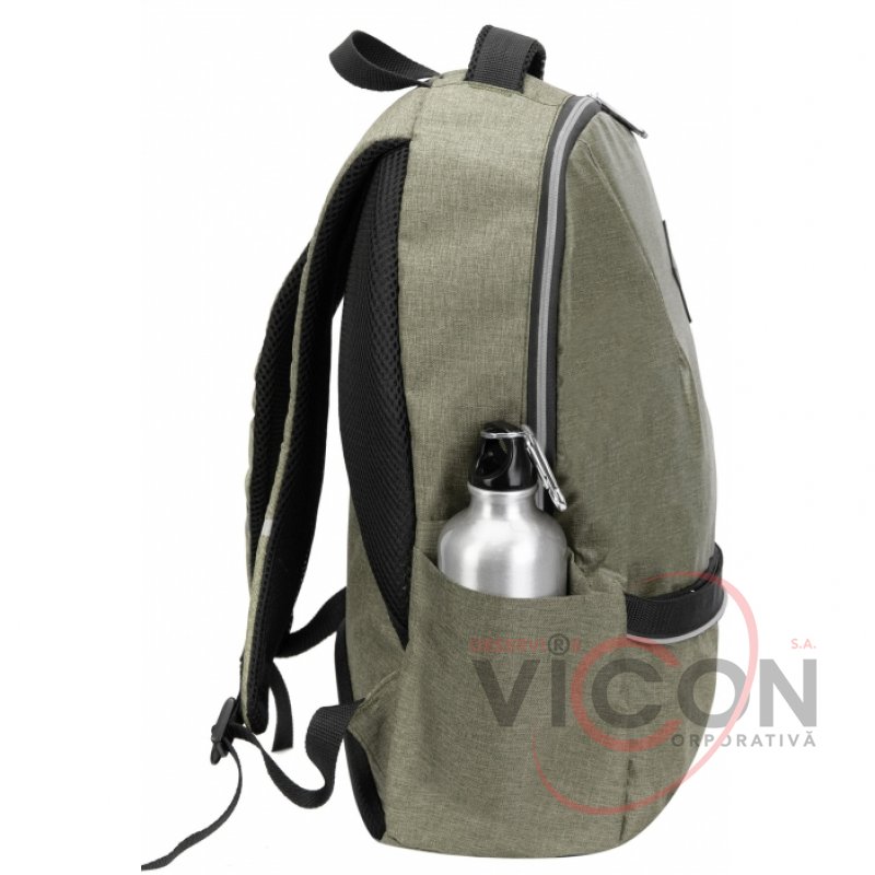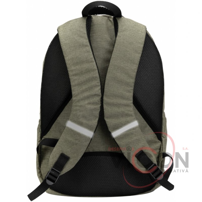 Размер: 42,5*36*13,4 см, вес 385 гр. Анатомическая спинка с мягкими вставками, покрытыми дышащим материалом. Материал: полиэстер. 1 основное отделение со светоотражающей молнией. 1 карман на молнии на фасаде со светоотражающей лентой. Боковые карманы. Кольцо для подвесок на фасаде. Лэптоп, ключница и органайзер в основном отделении. S-образные лямки со светоотражающими элементами. Надежная металлическая фурнитура. Прочная ручка и ручка-петля