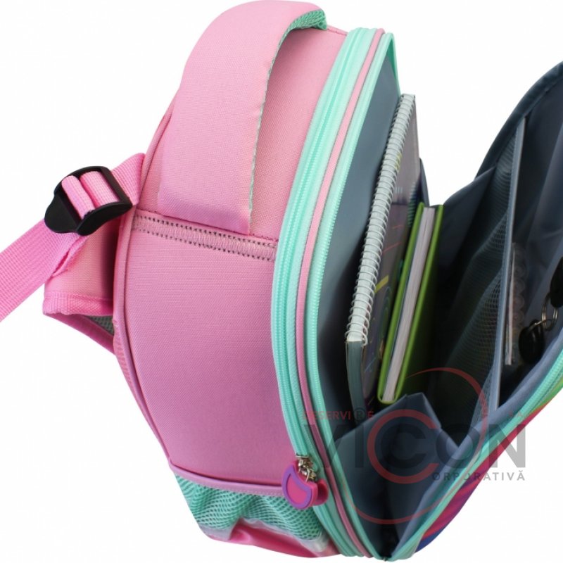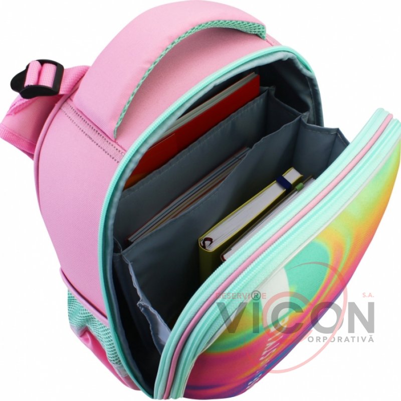 Размер 28*12*38 см. Количество отделений - 2. Материал: EVA-фасад, водоотталкивающий полиэстер. Функциональный органайзер с резинкой и разделителем для книг, ортопедическая спинка с мягкими вставками, эргономичные S-образные лямки, боковые карманы, оригинальная фурнитура, крепкая ручка, ручка-петля. Нагрудный ремень для дополнительной фиксации. Пластиковые ножки на дне.