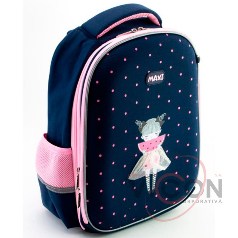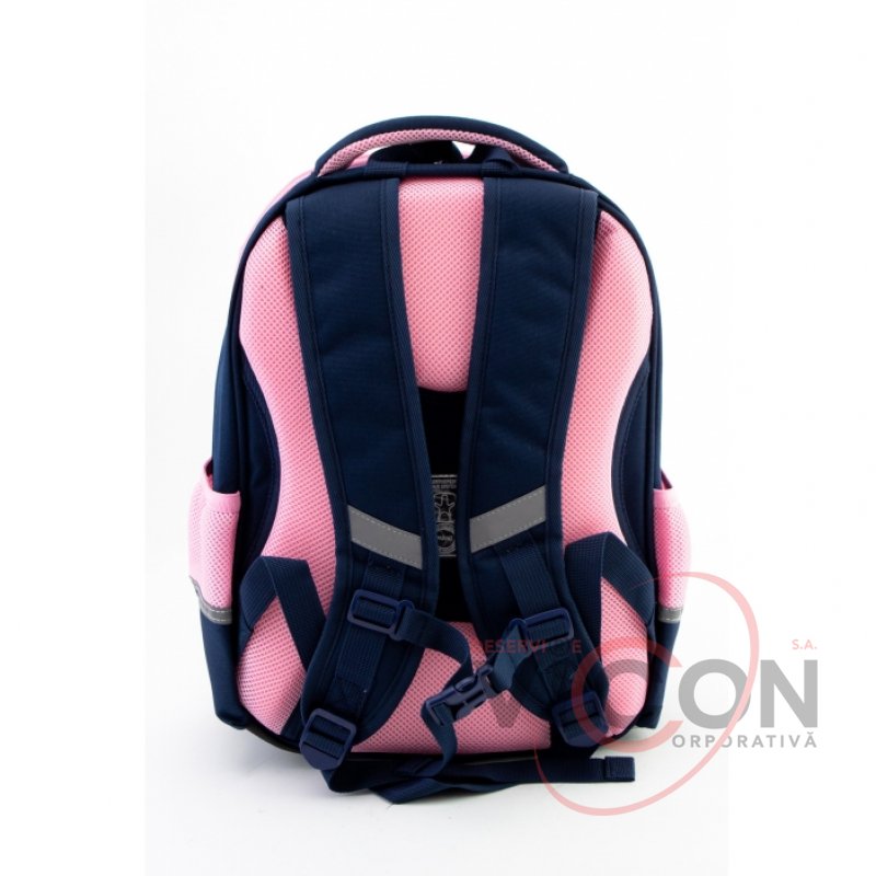 Рюкзак содержит: 2 основных отделения; 2 боковых кармана для бутылочки и зонтика; жесткая ортопедическая спинка; эргономические S-образные лямки; разделитель для книг с резинкой; ключница; нагрудный ремень для дополнительной фиксации; надежная фурнитура; светоотражающие элементы; крепкая ручка и ручка-петля; прорезиненное дно с ножками; кольцо для брелока.