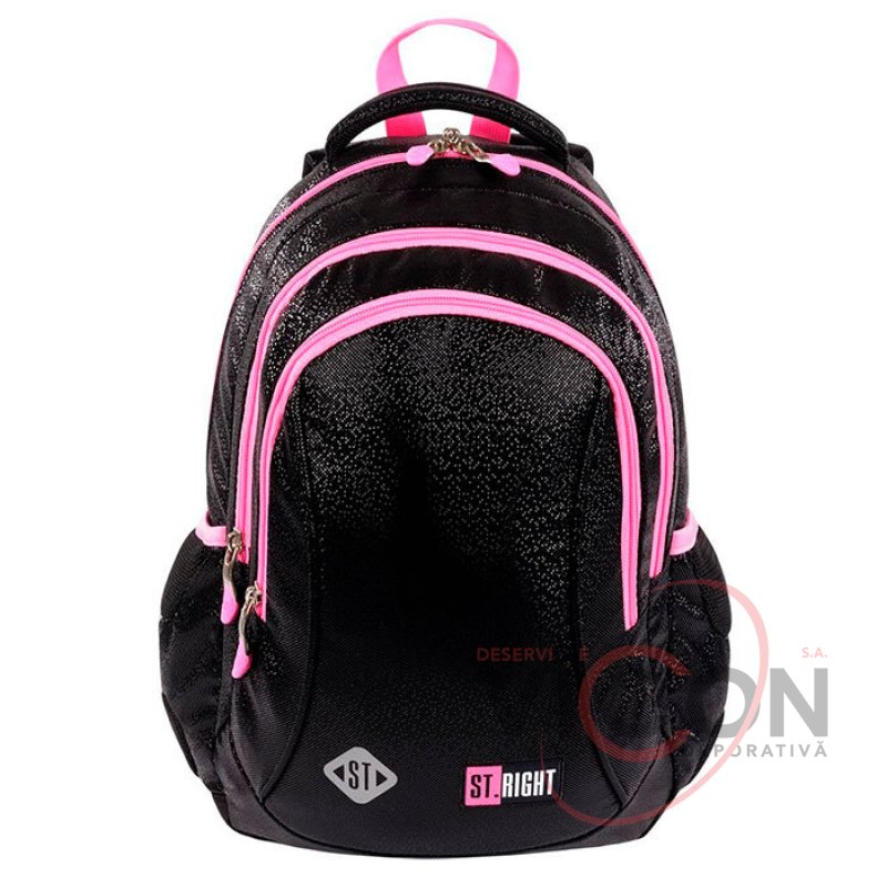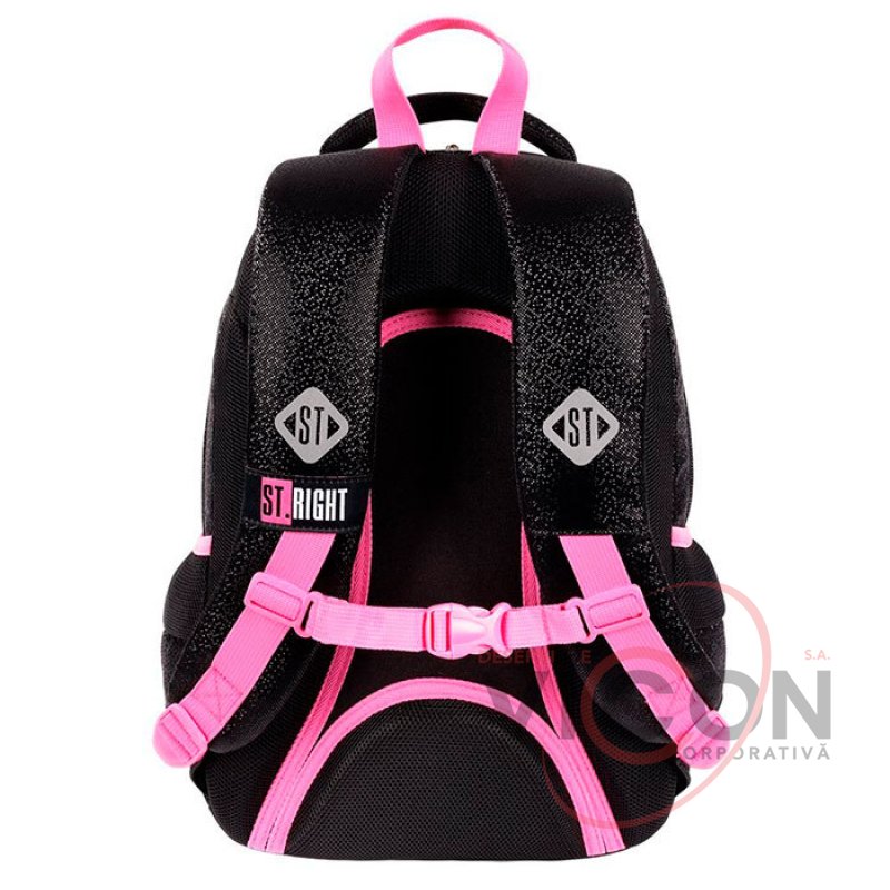 Рюкзак для дошкольников эргономичный водонепроницаемый коллекция St.Right - черный с блестками BP26 39x27x17см