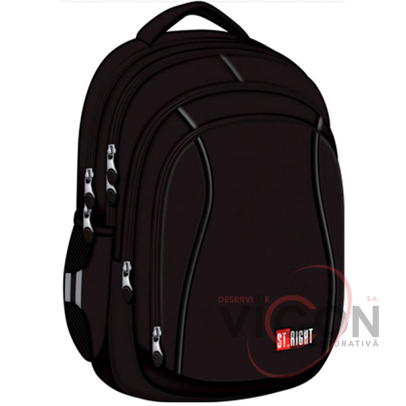 Школьный ранец St.Right 4 отделения эргономичный водонепроницаемый St.Black BP04 43x32x20 см