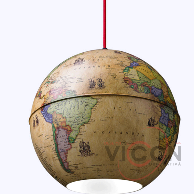 Нежное освещение этого подвесного светильника может создать теплую и приятную атмосферу вокруг него. Античный дизайн дарит элегантность и ощущение истории, а детальное изображение земного глобуса может пробудить интерес и восхищение географией и исследованиями.