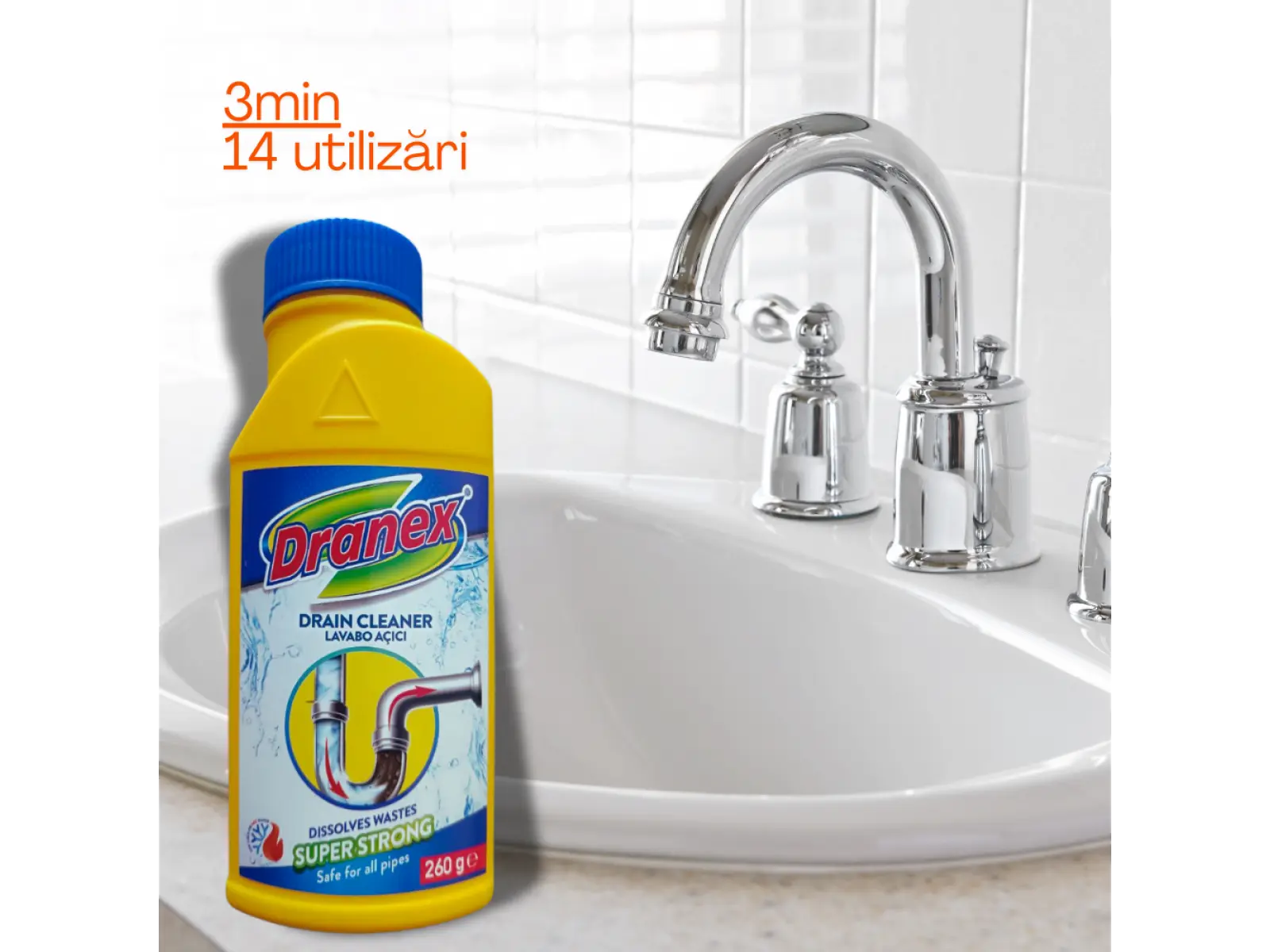 Удаляет засор в раковине и в ванной. Очищает трубы, удаляет засоры: масла, волос и других остатков путем химического плавления. Не повреждает водопроводные трубы из ПВХ и пластика.