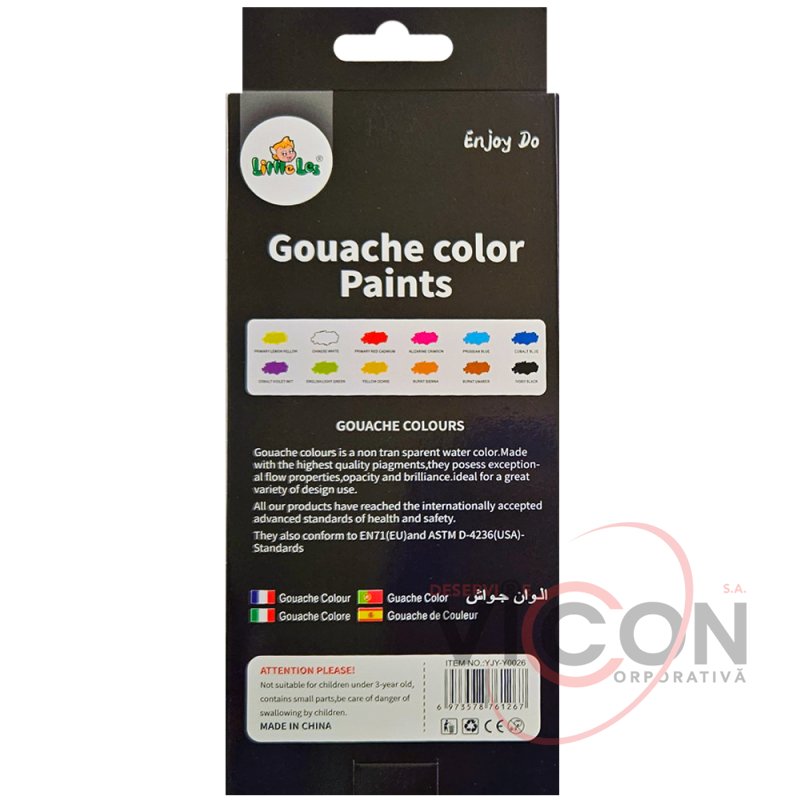 Гуашевые краски на водной основе 12 цветов x 12 мл, Little Les ML1-3G