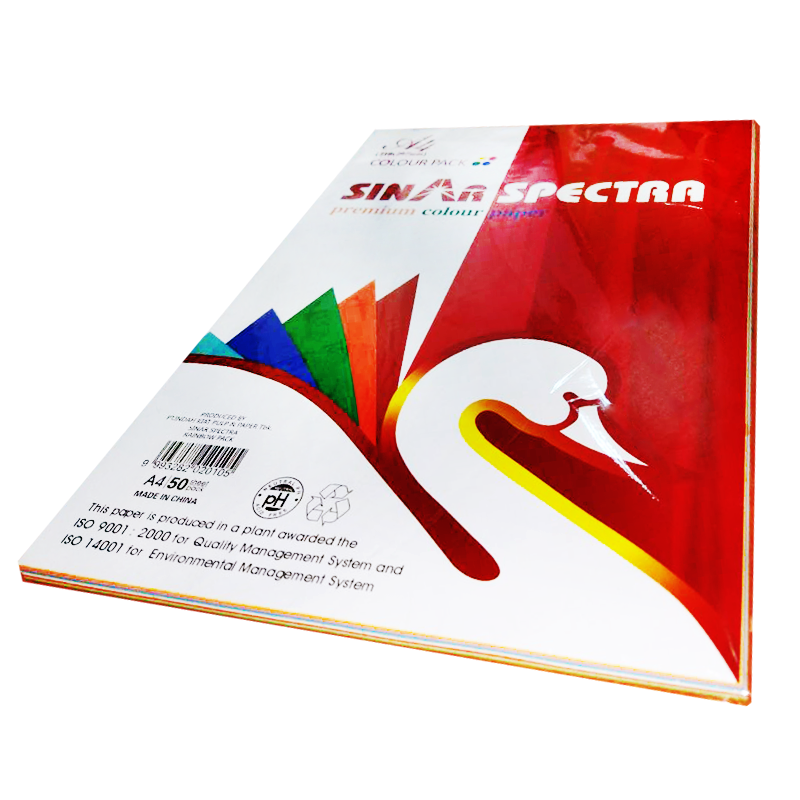 Бумага цветная, А4, 50 листов (ассорти) 10 цветов, SINAR SPECTRA