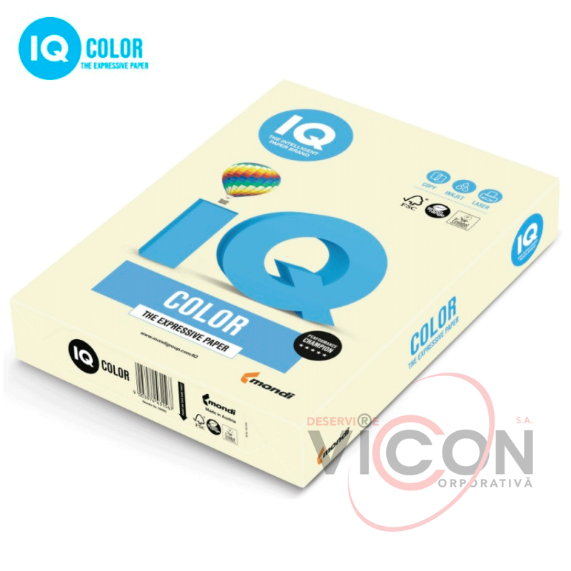 Бумага цветная IQ color, А4, 80 г/м2, 500 л., BE-66, пастель, ванильная