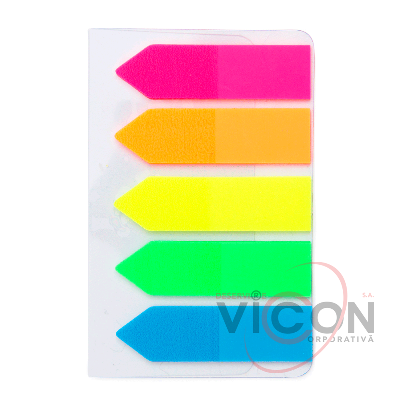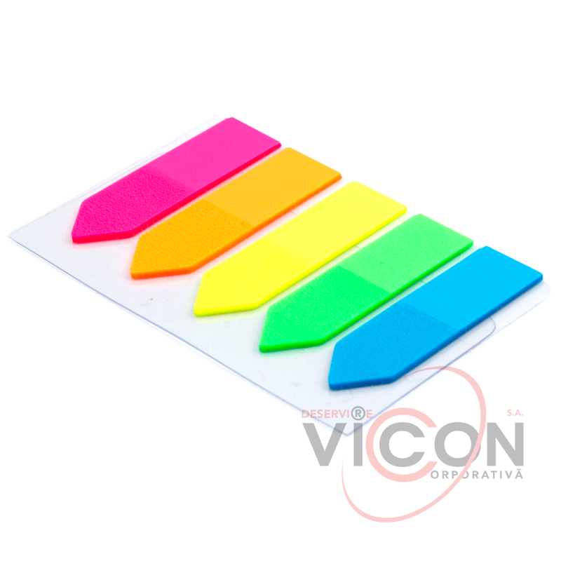 Самоклеящиеся пластиковые индексы-стрелочки (неон) 12х44мм, 5x20 листиков