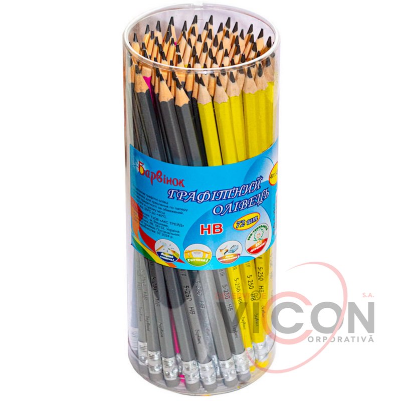 Карандаш Барвинок 5-250 графитовый с резинкой НВ пластиковый шестигранный