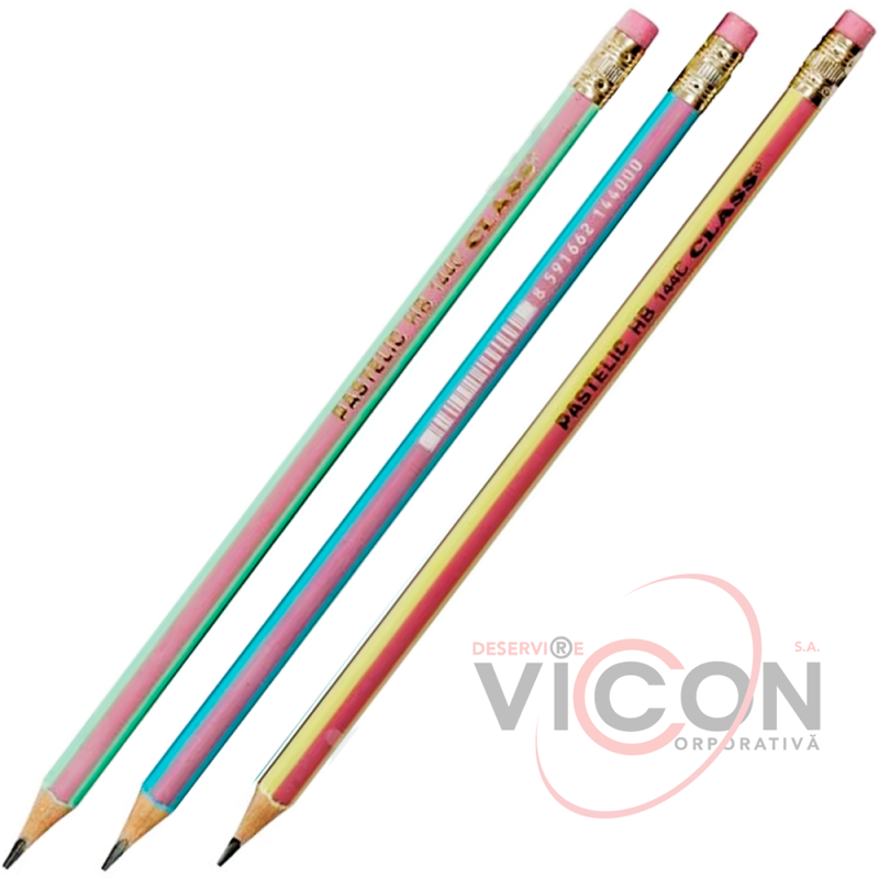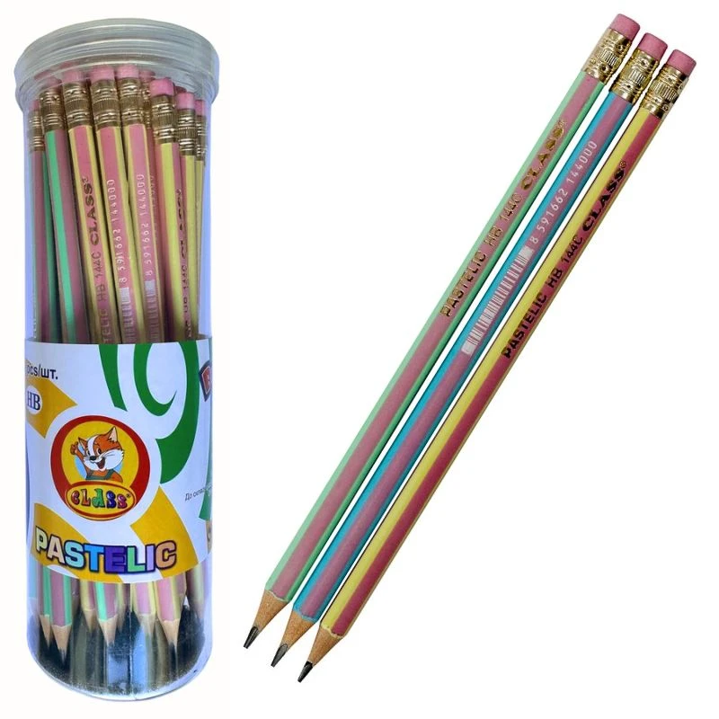 Карандаш графитный CLASS 144C, НВ, с резинкой, треугольный, PASTELIC, ассорти