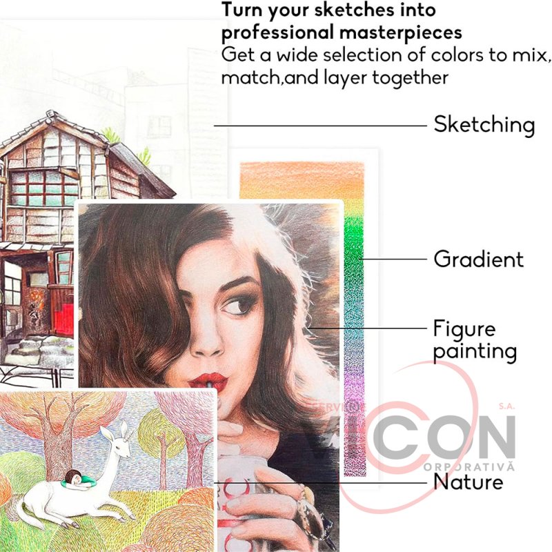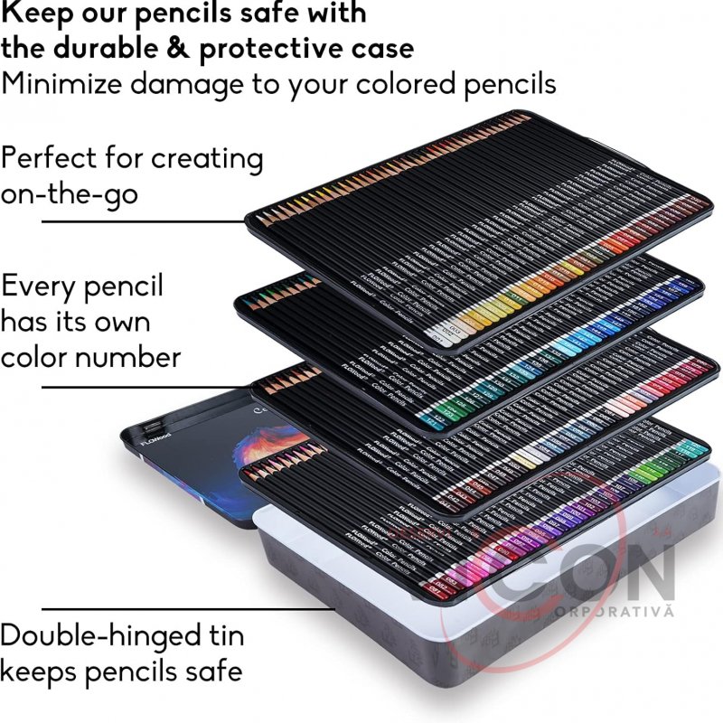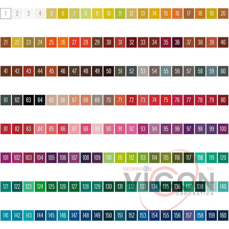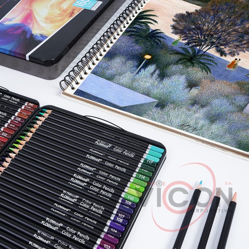 - 160 насыщенных ярких цветов (каждый из которых индивидуально промаркирован) помогут создать точные творческие рисунки и эскизы.