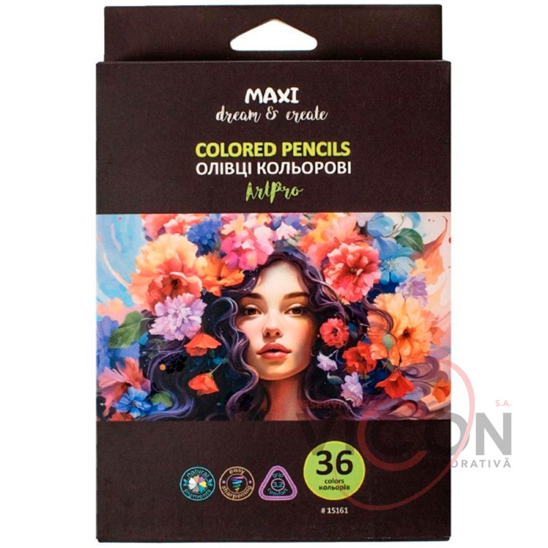 Карандаши цветные профессиональные "Art Pro", 36 цветов, треугольные. Материал: дерево – мягкая липа; трехгранные, заточенные; длина карандашей 17,5 см; в картонной коробке с подвесом; яркие цвета. Толщина грифеля 3,2мм.