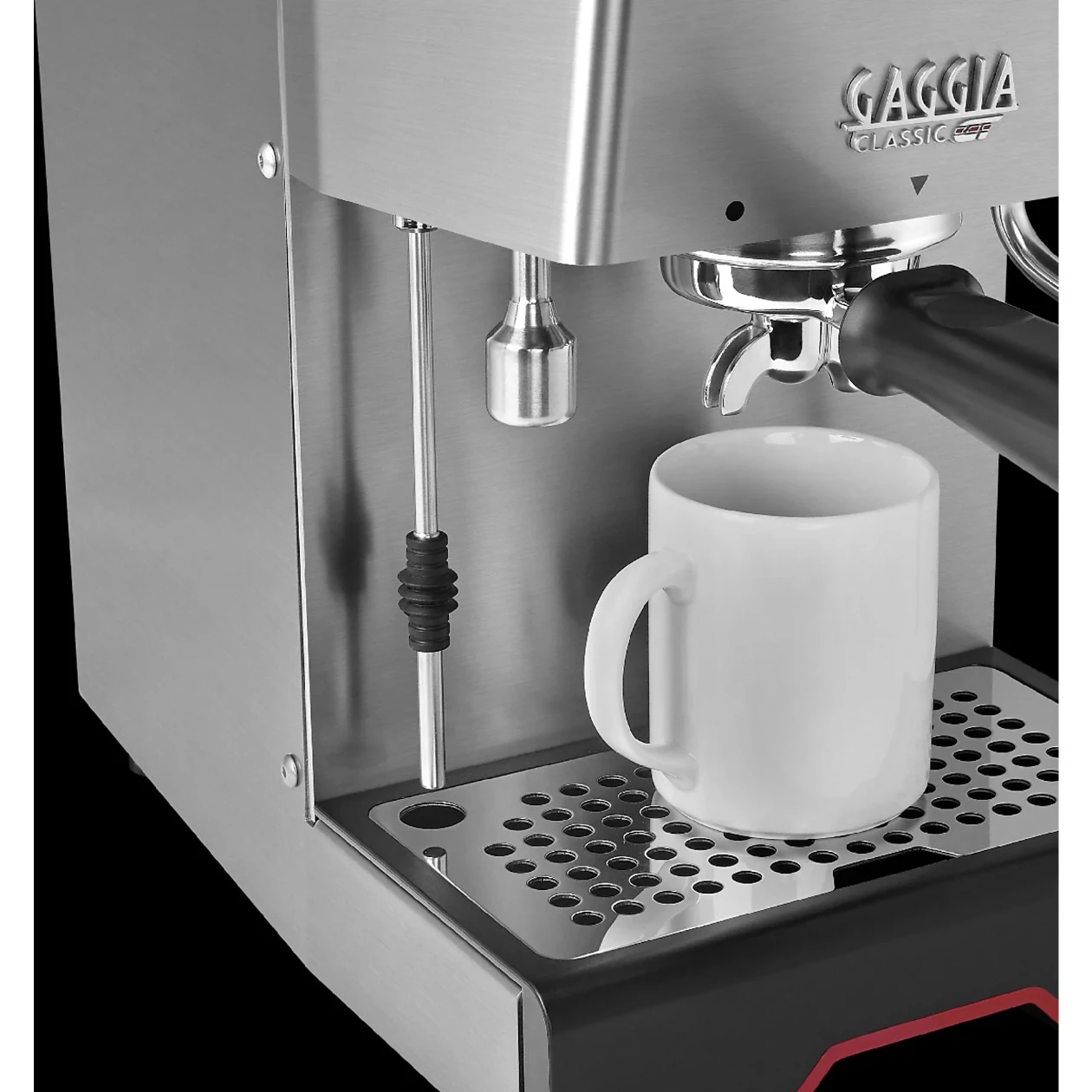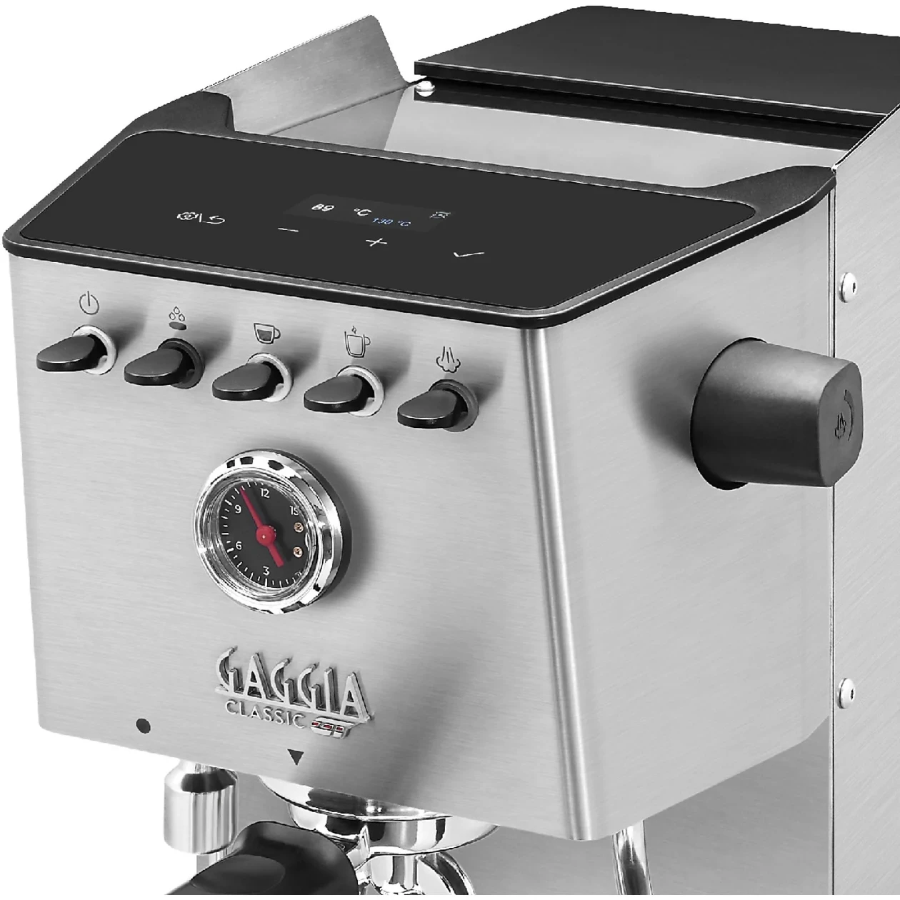 ПРОФЕССИОНАЛЬНАЯ ХРОМИРОВАННАЯ ЛАТУННАЯ ГРУППА И ФИЛЬТР-ДЕРЖАТЕЛЬ. Разработанная в соответствии с профессиональными стандартами, группа и фильтр-держатель изготовлены из хромированной латуни, что обеспечивает высочайшее качество эспрессо и долговечность кофемашины. Тяжелая хромированная латунная группа и фильтр-держатель гарантируют постоянную и стабильную температуру заваривания на протяжении всего процесса. ЭЛЕКТРОМАГНИТНЫЙ КЛАПАН. Трехходовой электромагнитный клапан мгновенно сбрасывает давление в фильтр-держателе после приготовления эспрессо. Вода вытекает из фильтр-держателя через открытый клапан в поддон для капель. Это позволяет сохранить кофейную таблетку сухой, что облегчает ее очистку. ТРАДИЦИОННЫЙ БОЙЛЕР GAGGIA. Бойлер разработан для обеспечения непревзойденной стабильности температуры, гарантируя вам лучший эспрессо каждый раз, когда вы его завариваете. Насос с давлением 15 бар подает горячую воду через молотый кофе под высоким давлением, обеспечивая превосходный вкус и пышную пенку эспрессо. ПРОФЕССИОНАЛЬНАЯ ПАРОВАЯ ТРУБКА С 2 ПАРОВЫМИ ВЫХОДАМИ. Идеальный способ взбить молоко паром и получить изысканно шелковистую микропену барного качества. Размеры: Ш 23 см × В 38 см × Г 24 см.