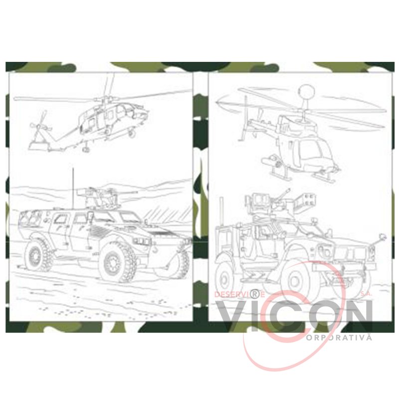 Получайте удовольствие, раскрашивая самые эффектные военные машины в действии и наклеивая наклейки на некоторые детали.