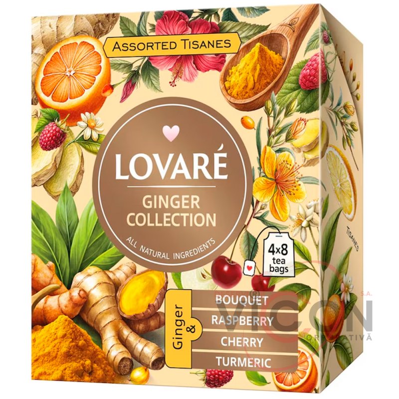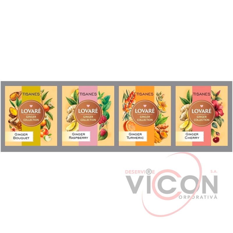 Коллекция травяного чая Lovare Tisanes Ginger (4 вида по 8 пакетиков) – это уникальный имбирный ассорти четырех видов: