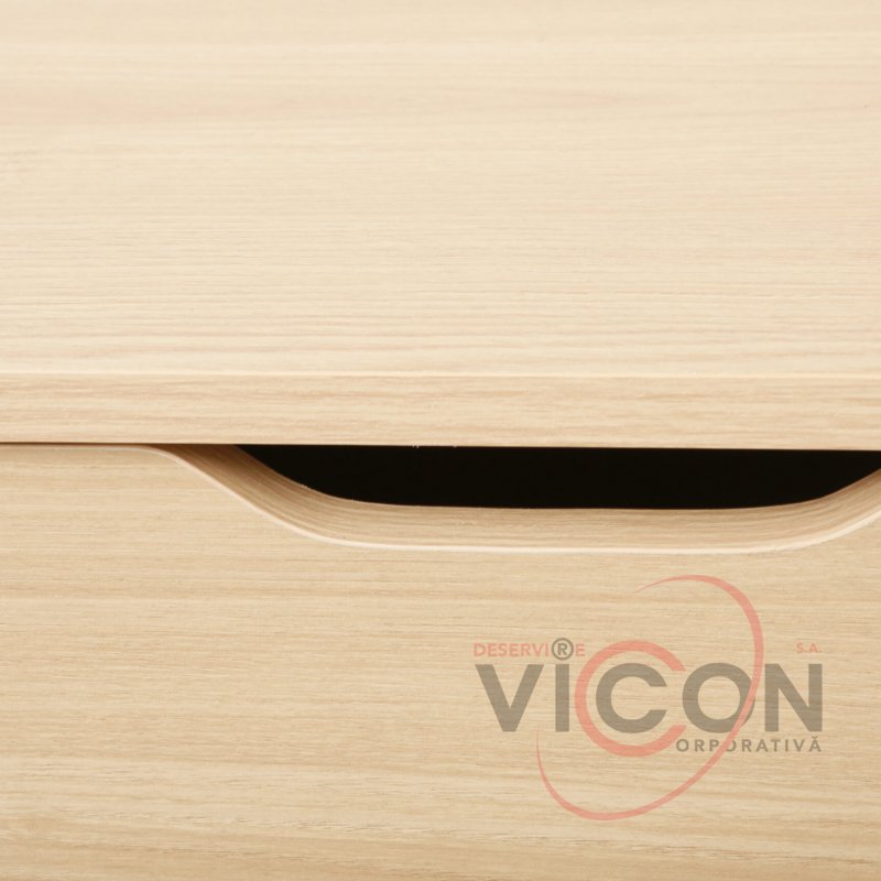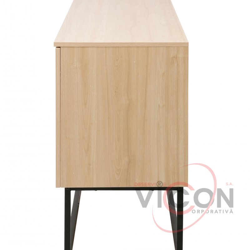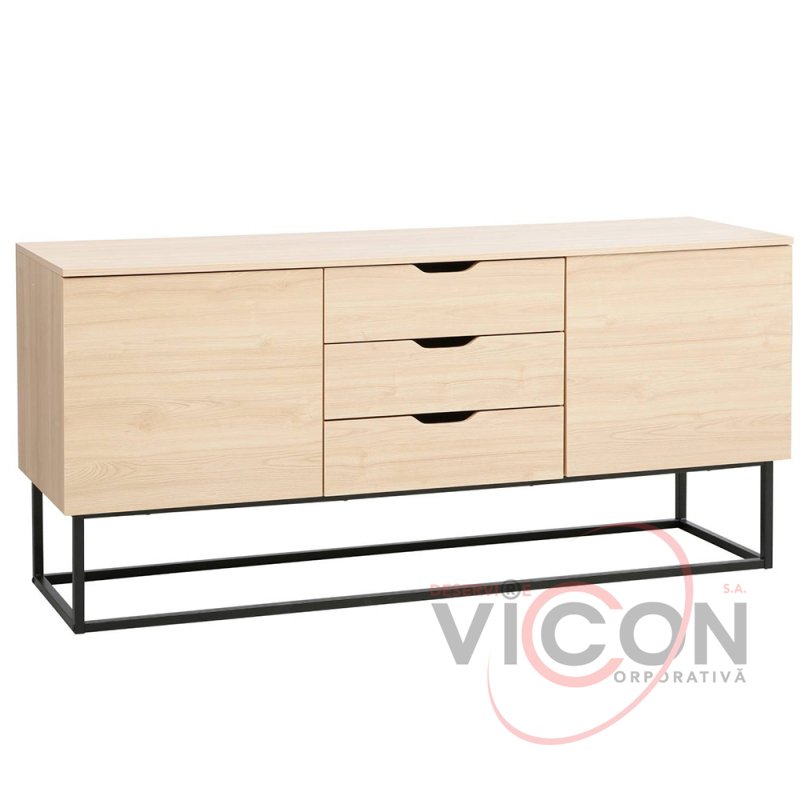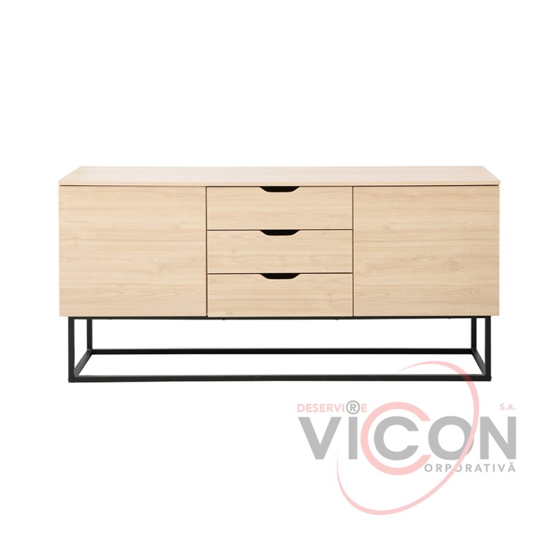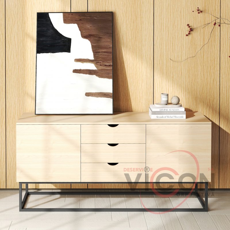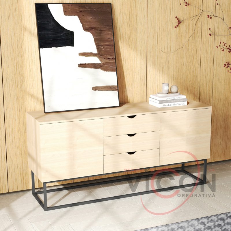 Комод оснащён 3 центральными ящиками, идеально подходящими для хранения мелких предметов, документов или аксессуаров, и 2 боковыми дверцами, которые предоставляют дополнительное пространство для хранения.