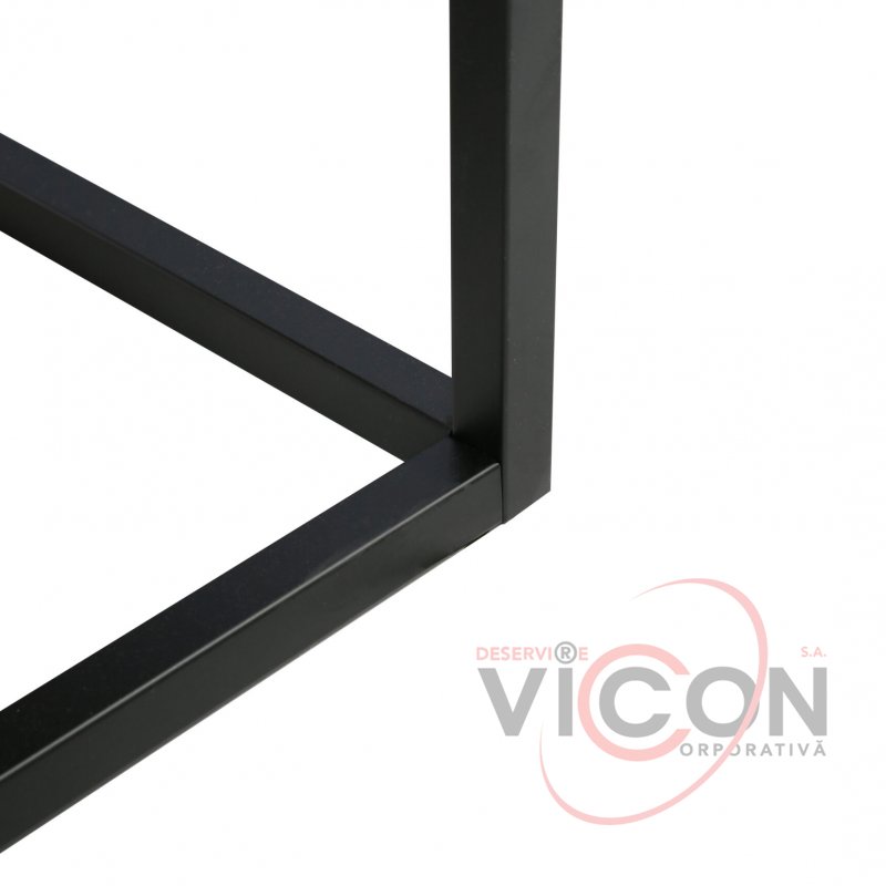 Конструкция поддерживается металлическим каркасом, окрашенным методом порошкового напыления в цвете чёрный P02, что обеспечивает стабильность, прочность и создаёт элегантный контраст с текстурой дерева.