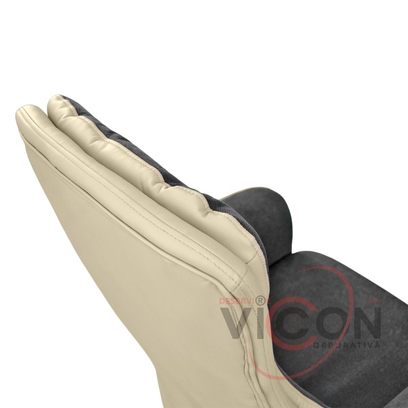 Корпус кресла изготовлен из фанеры и пенополиуретана, а в качестве обивки используется экокожа и ткань. Обивка из экокожи долговечна и проста в уходе, а ткань обеспечивает роскошь и комфорт. Такое сочетание обивки не наносит вреда окружающей среде, что делает кресло подходящим для тех, кому нужна экологичная мебель.