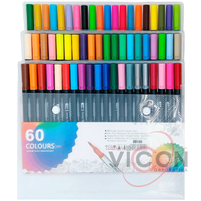 Линер тонкий+кисть 60 цветов ML50-12 (0.4мм-1-2мм)