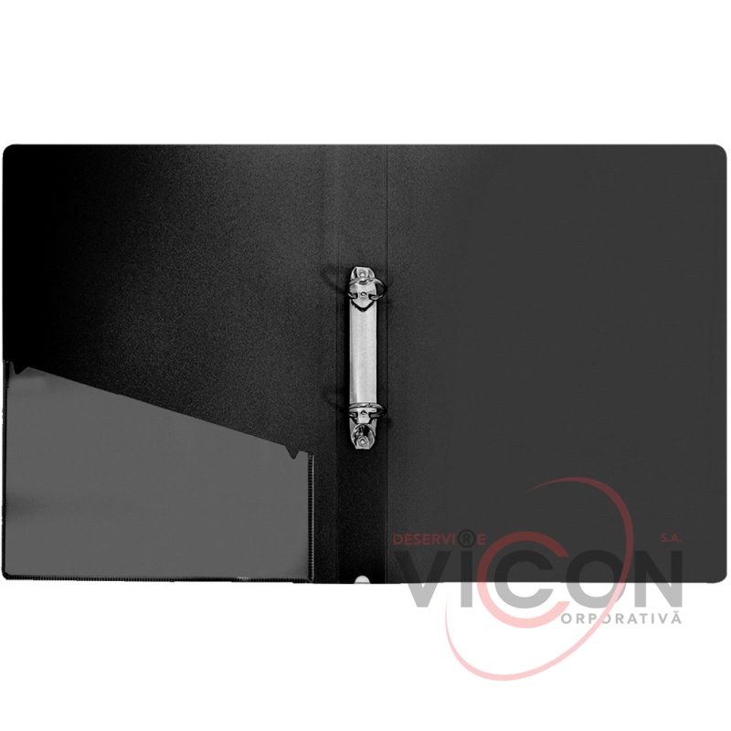Имеет 2 круглых кольца и прозрачный карман внутри.